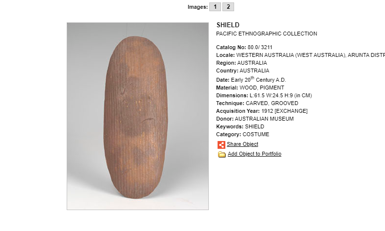 Arunta Shield. Australian Museum Exchange 1912